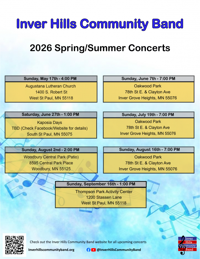 Inver Hills Community Band (IHCB) is a volunteer organization made up of approximately 45-50 musicians.